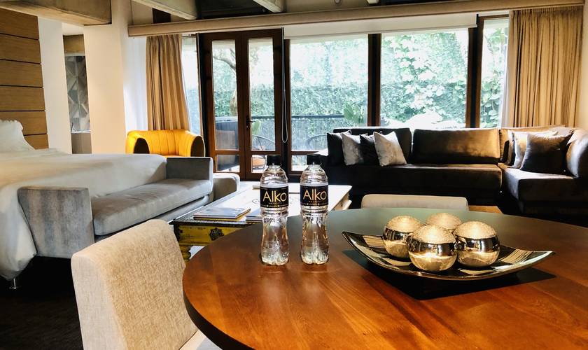 Equipped with a king-size bed and a sofa bed, this room for two people or more has a spacious living room. Its four-seat dining table is perfect for meals in complete privacy. Overall, it is a room decorated with exquisite taste, but designed for practical use. Additionally, this room includes a kitchenette, a study, a terrace and private garden. Absolutely everything you need to create magical and unforgettable memories.